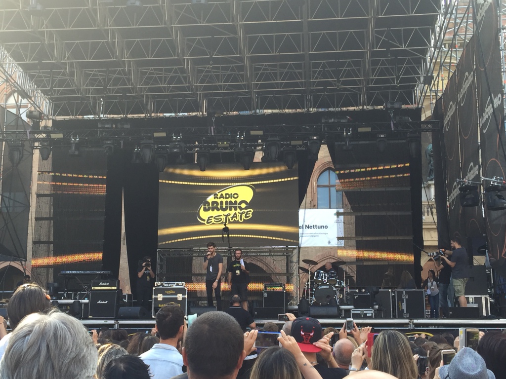 Co mi się też bardzo w Bolonii spodobało, to to że zabytki są świetnie oznaczone, także te których nie ma w przewodnikach posiadają tabliczki z nazwą i opisem danego zabytku - to bardzo pomaga przy zwiedzaniu. Gdy przyszliśmy na plac rozłożona była wielka scena i zebrało się już sporo osób na rynku, okazało się, że jest tu wielki koncert z okazji jubileuszu radia, na którym występować miał m.in. Alvaro Soler. My załapaliśmy się na same próby, gdyż właściwy koncert był planowany na 20-tą.