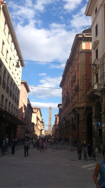 Droga z hotelu była dosłownie prosta. Do starego miasta wchodziło się przez bramę Porta San Felice, która wyznaczała granicę. Dookoła starego miasta jest aż 9 takich bram, przy wlocie każdej głównej ulicy. Idąc, już w połowie drogi znajdowaliśmy się na wprost najbardziej charakterystycznej wieży w Bolonii.